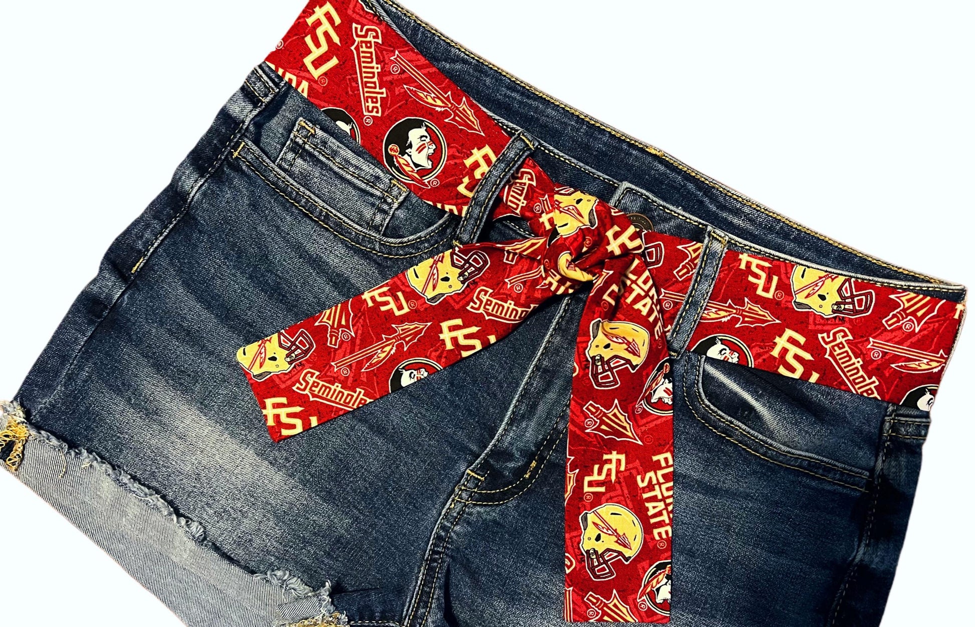 Get Game Day ready in this Florida State University sash belt. Depending on your waist size and the length you choose, you can tie this sash in a simple knot (as shown) or in a bow with longer-hanging tails. Tie in front, in back, or on the side.