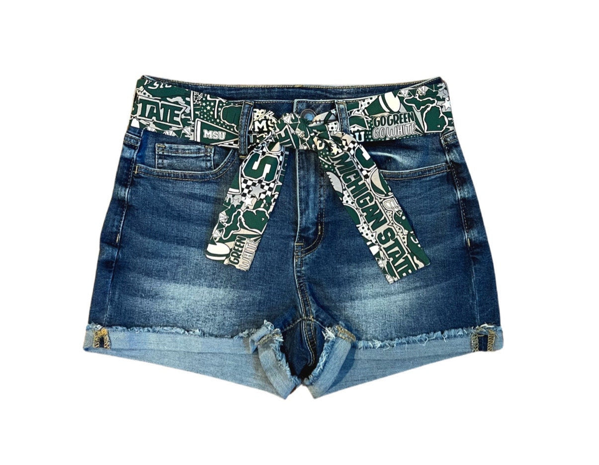 Get Game Day ready in this Michigan State University sash belt. Depending on your waist size and the length you choose, you can tie this sash in a simple knot (as shown) or in a bow with longer-hanging tails. Tie in front, in back, or on the side.
