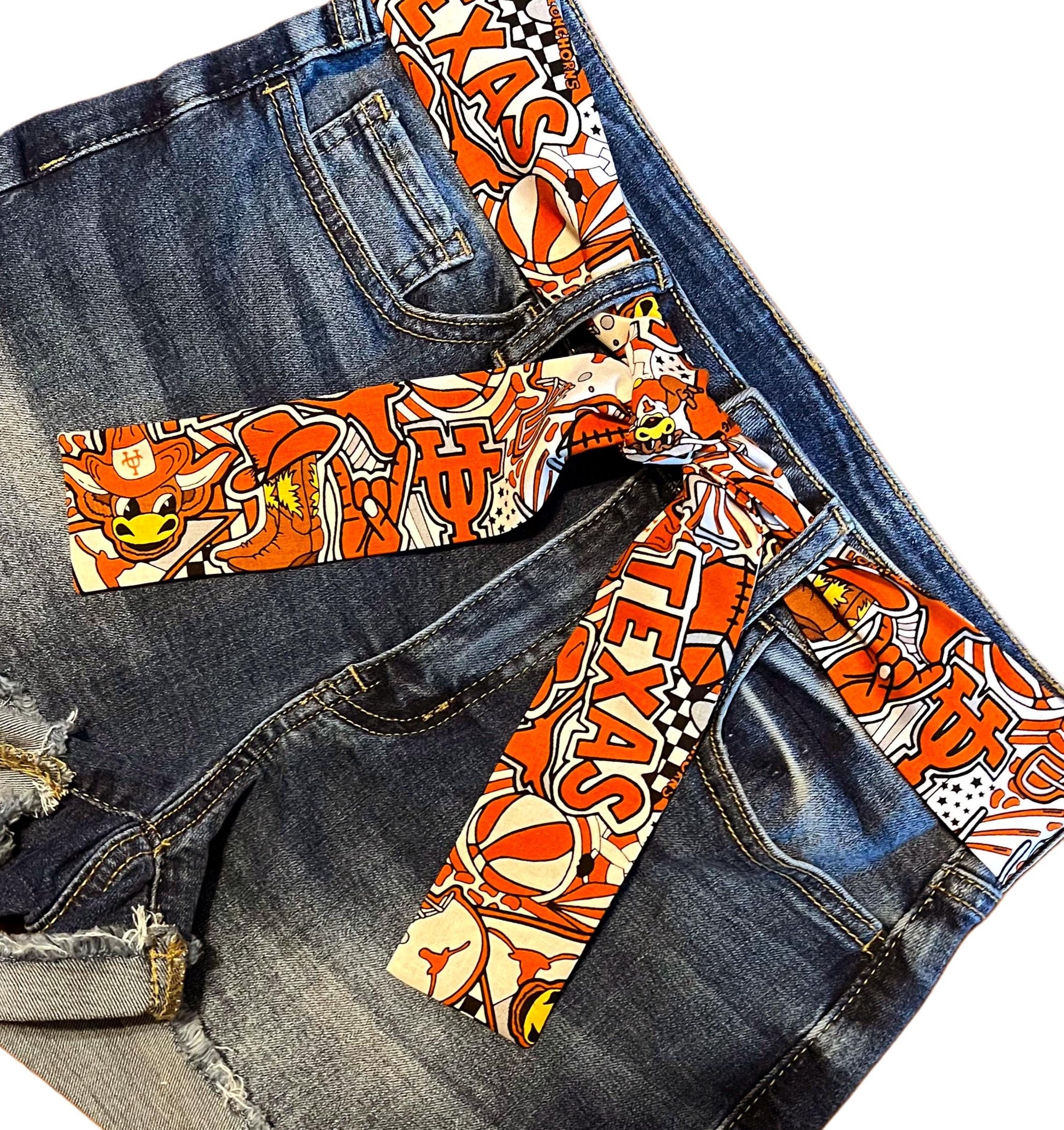 Get Game Day ready in this University of Texas Pop Art print sash belt. Depending on your waist size and the length you choose, you can tie this sash in a simple knot (as shown) or in a bow with longer-hanging tails. Tie in front, in back, or on the side.