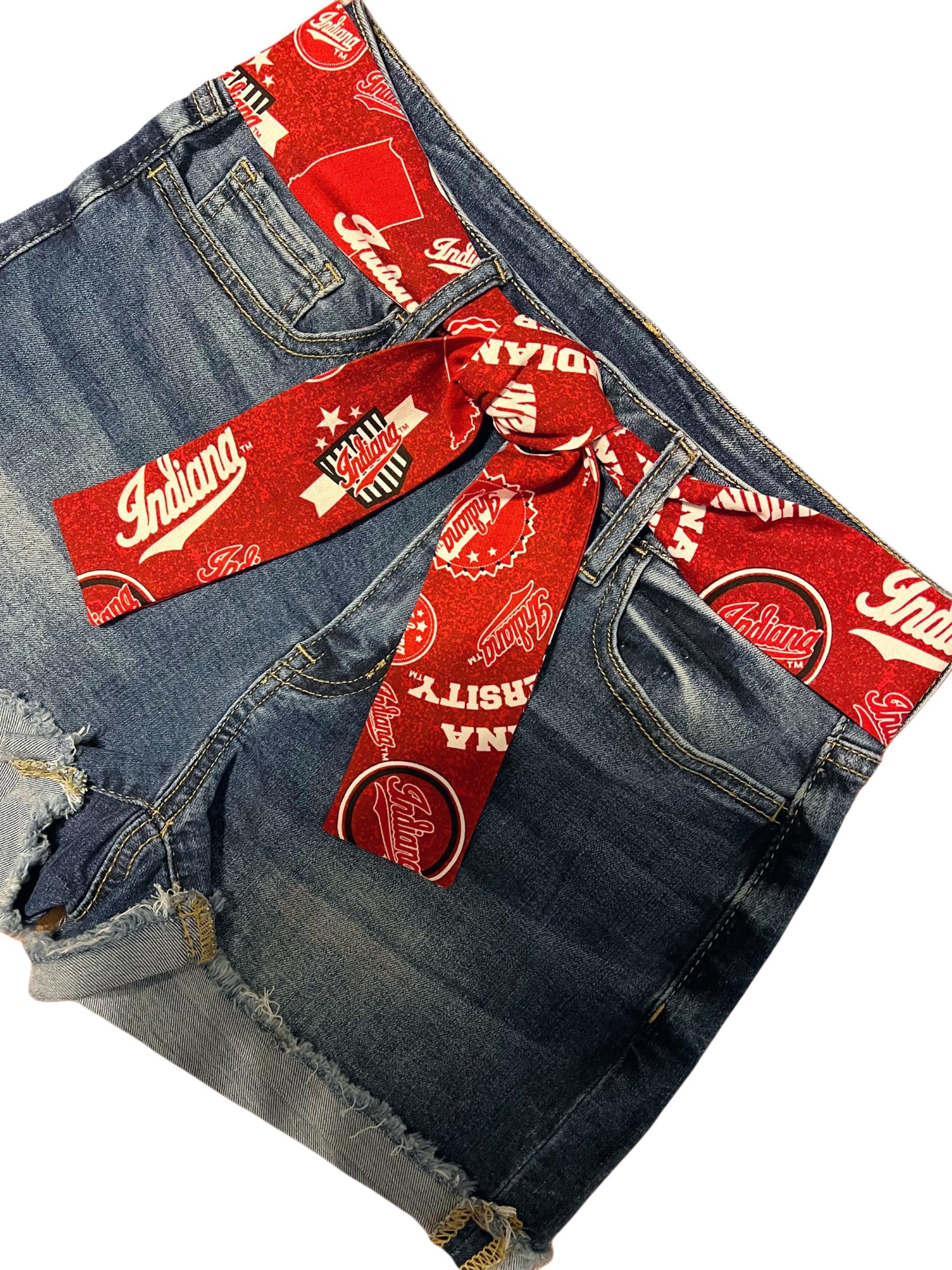 Get Game Day ready in this University of Indiana block print sash belt. Depending on your waist size and the length you choose, you can tie this sash in a simple knot (as shown) or in a bow with longer-hanging tails. Tie in front, in back, or on the side.